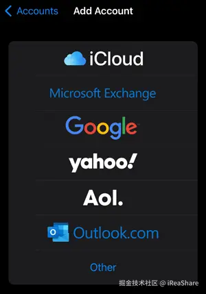 步骤 2: 点击“添加帐户”并选择“ Google ”。使用您的 Google 帐户登录。