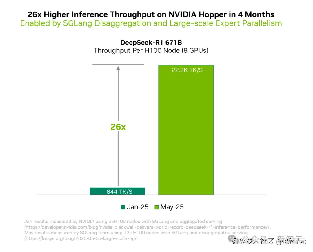 【新智元导读】近日,来自 SGLang、英伟达等机构的联合团队发了一篇万字技术报告:短短 4 个月,他们就让 DeepSeek-R1 在 H100 上的性能提升了 26 倍,吞吐量已非常接近 DeepSeek 官博数据!