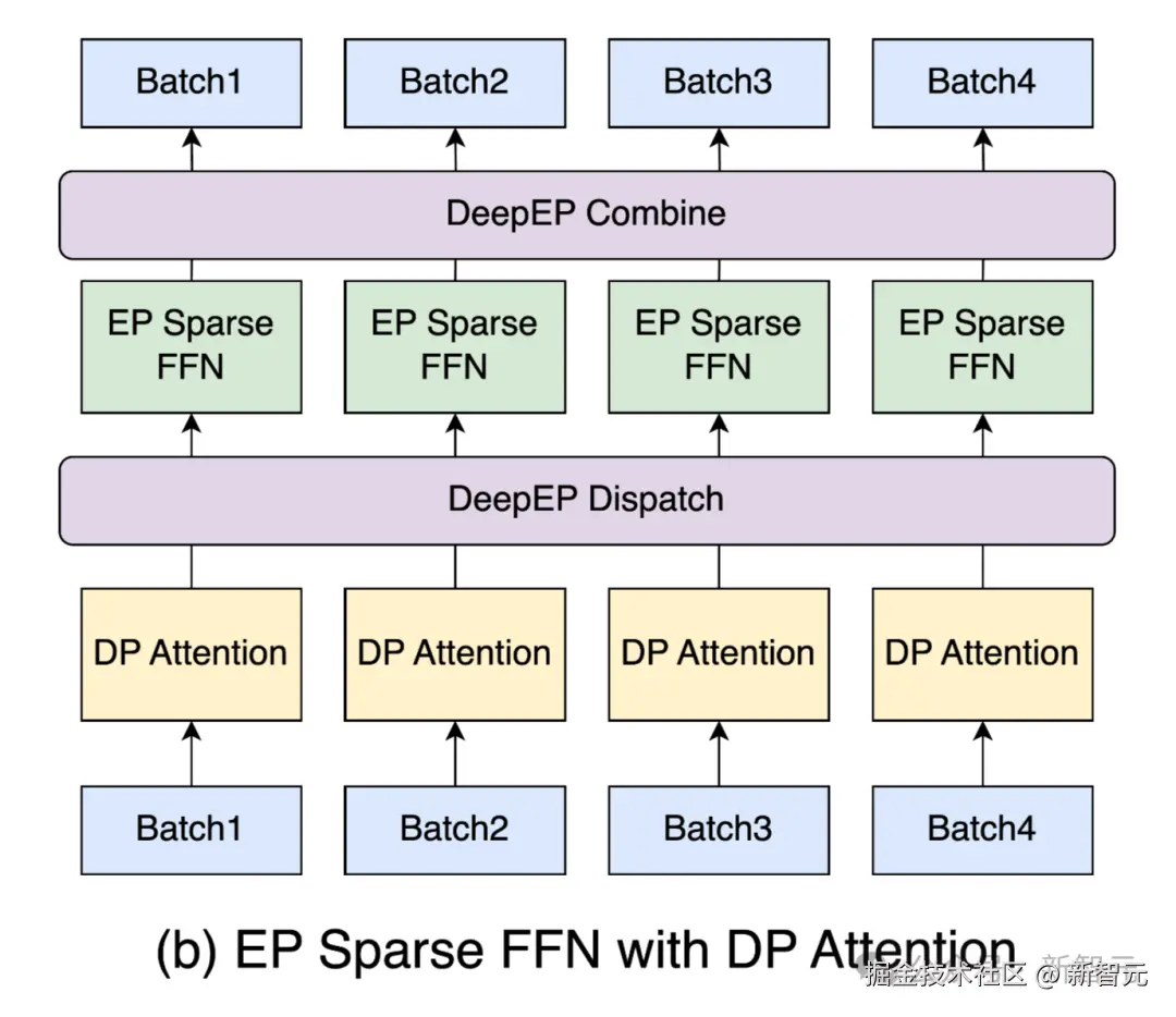 更进一步,如果 attention 计算也采用纯 DP 模式,那么设备间的通信将被完全消除,进而显著提升整体效率。