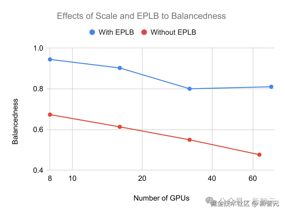 在下图中,团队展示了系统规模和 EPLB 算法对不平衡问题的影响。