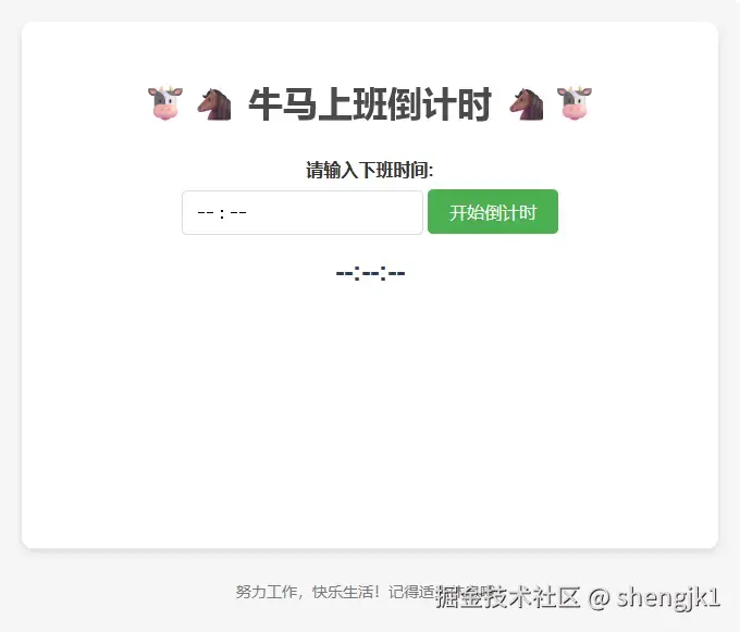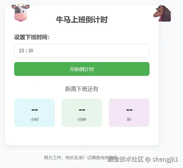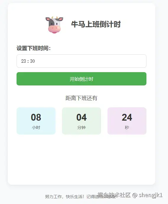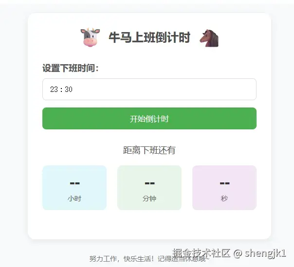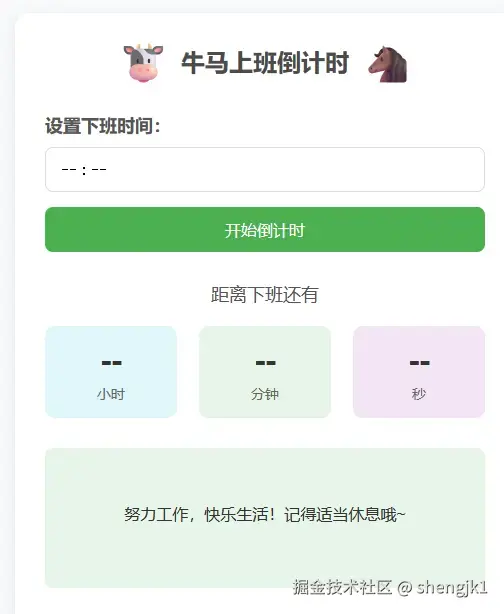 想做一个网站,可以设定好下班时间,显示下班倒计时,并且每隔两小时鼓励我一下。基于这样的想法,说干就干。