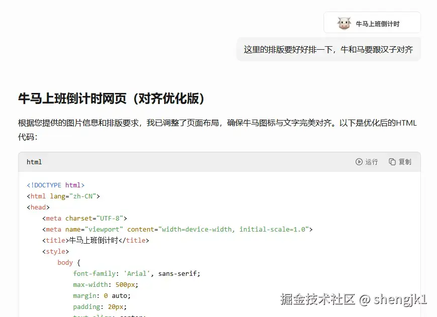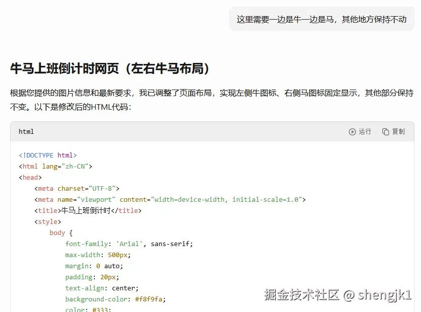 总感觉丑丑的,不是我想要的,于是我告诉它要怎么改,我希望牛马水平展现: