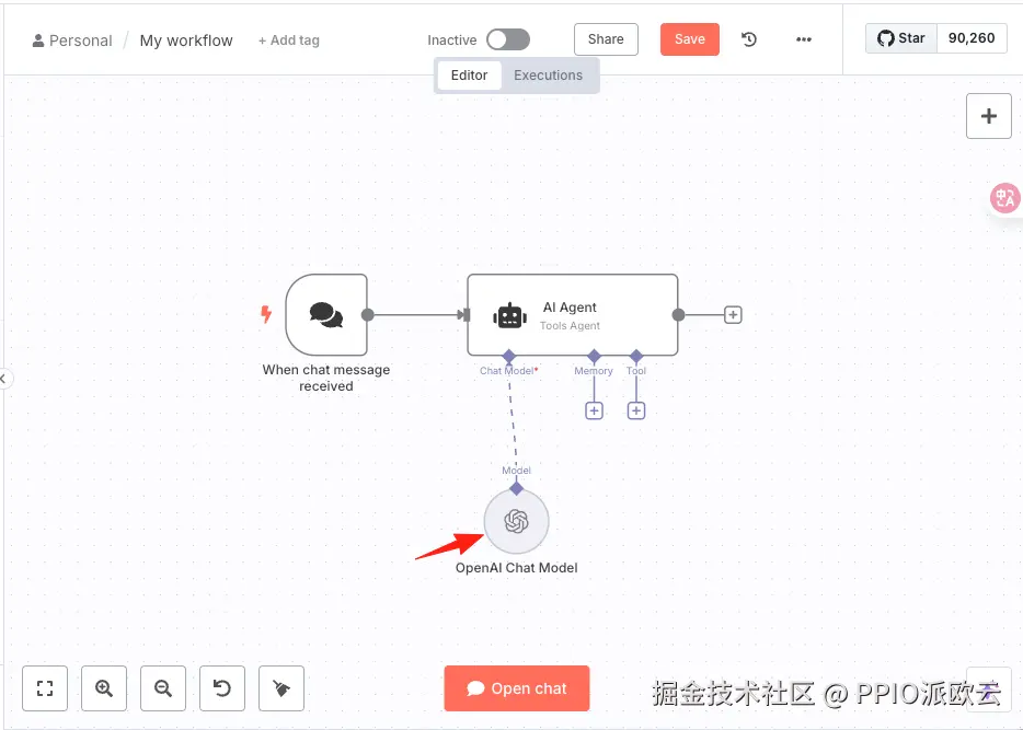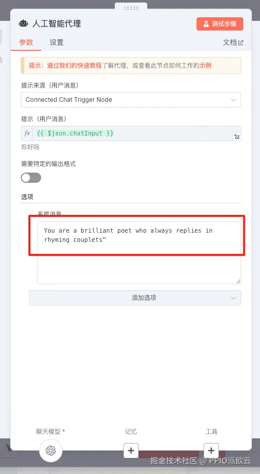 在 n8n 中集成 PPIO API,构建聊天 AI Agent