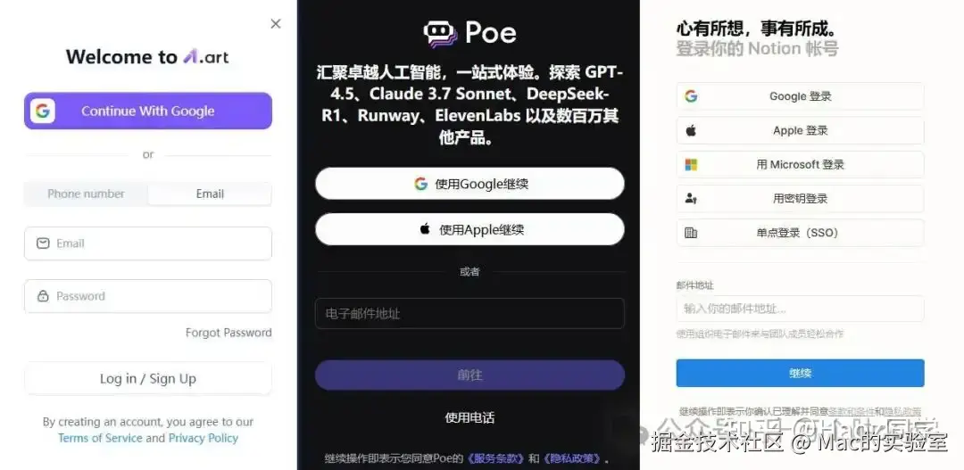 比如Notion、Poe、a1.art、Viggle等国外Ai应用网站都可以使用谷歌账号直接登录,有了谷歌账号便可以快速注册登录。