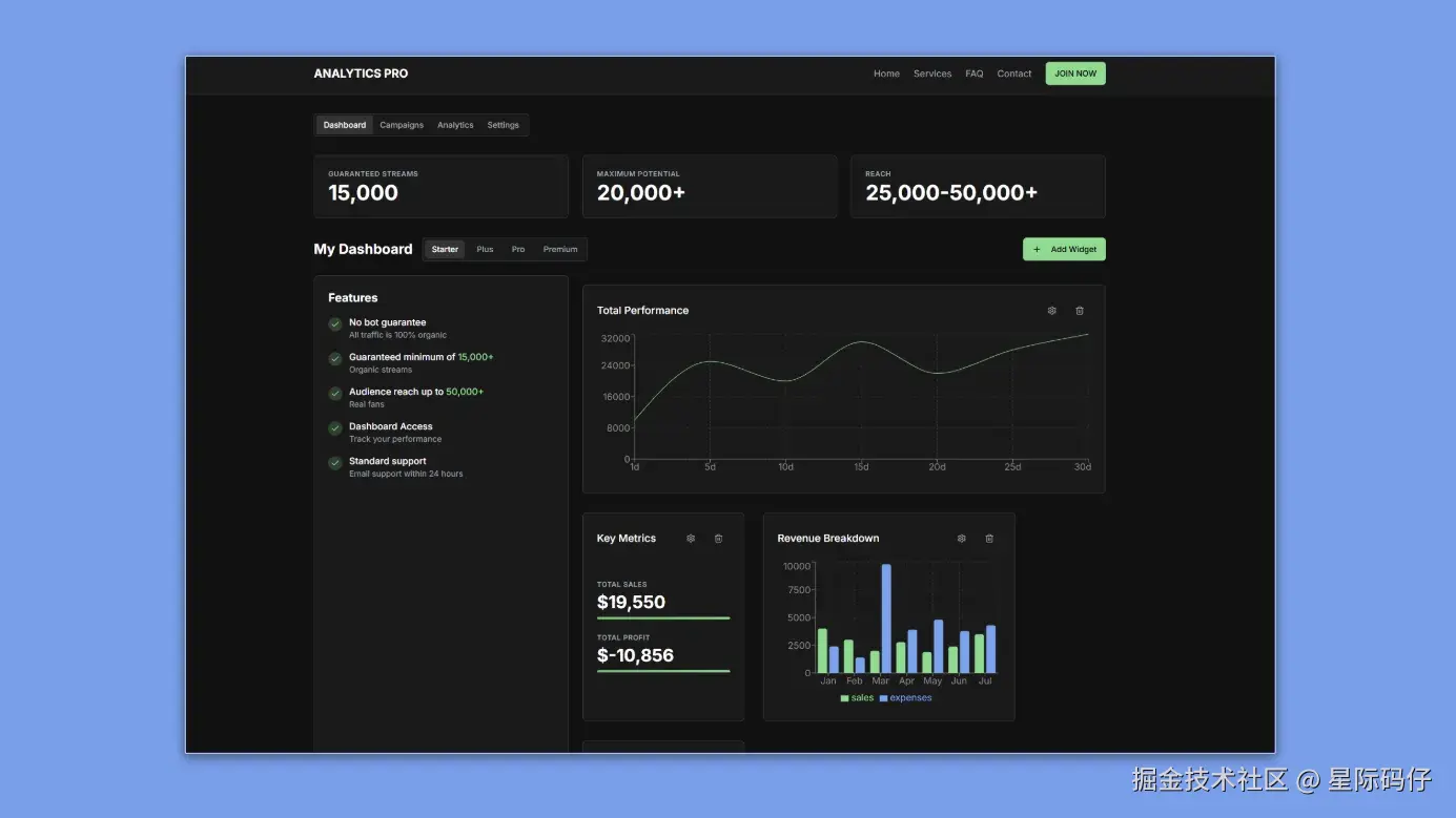 - 仪表盘样式迭代:成功将一个基础设计的仪表盘,逐步优化为更具现代感和专业感的黑白主题风格。