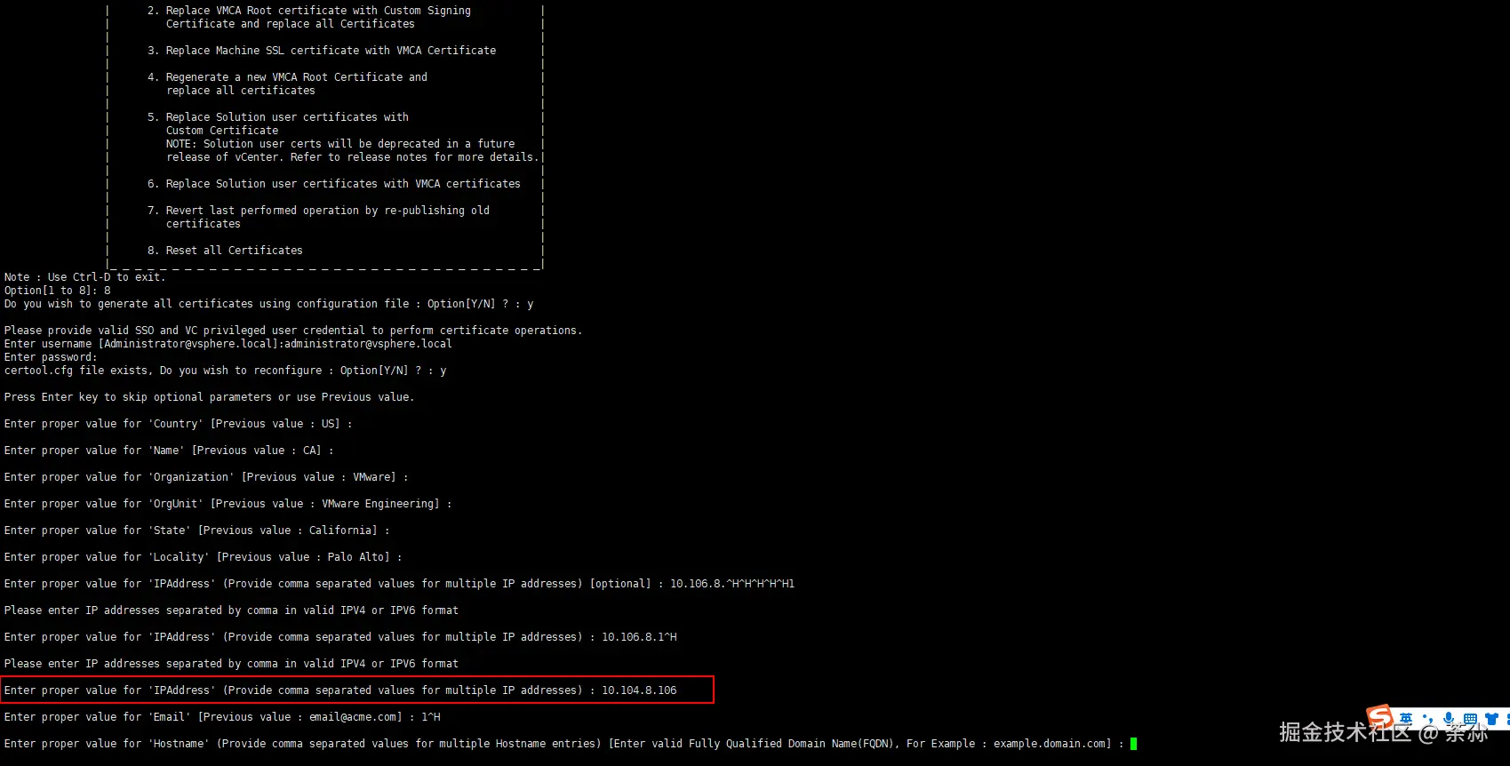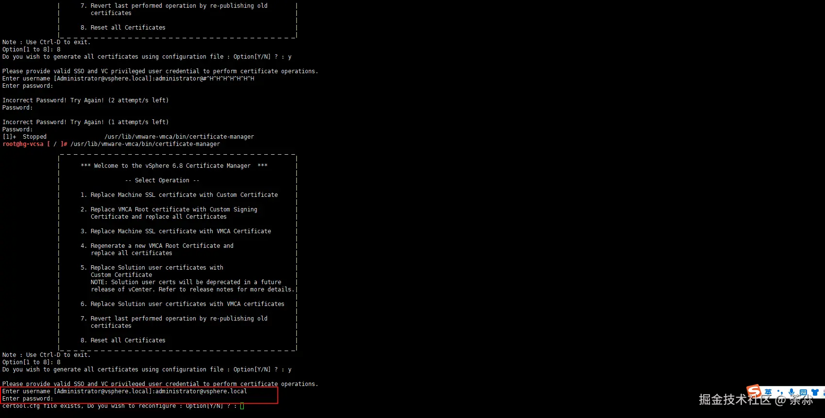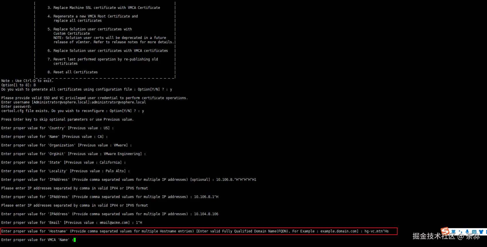 使用xshell连接进入vc,输入命令/usr/lib/vmware-vmca/bin/certificate-manager回车开始更新