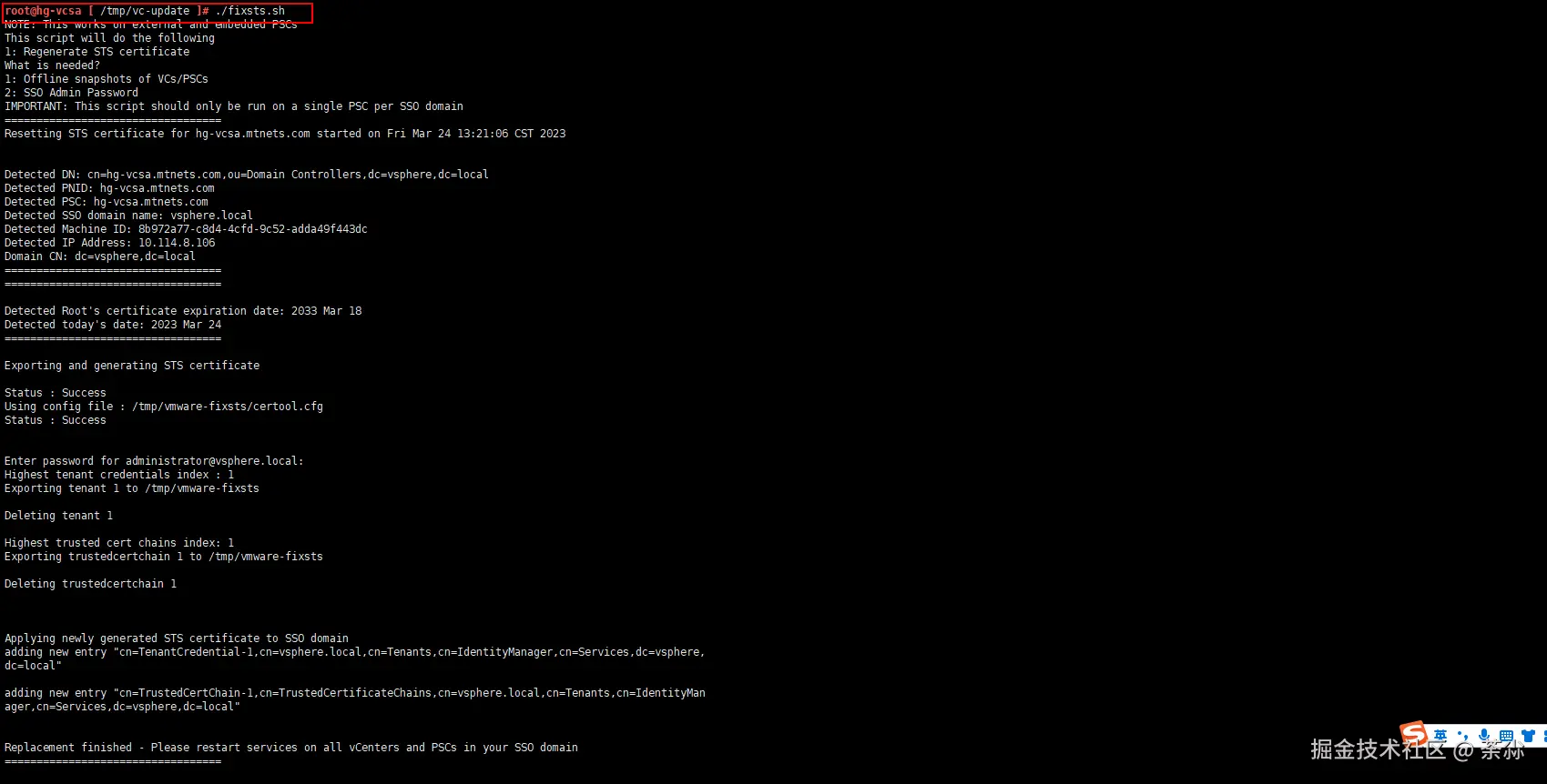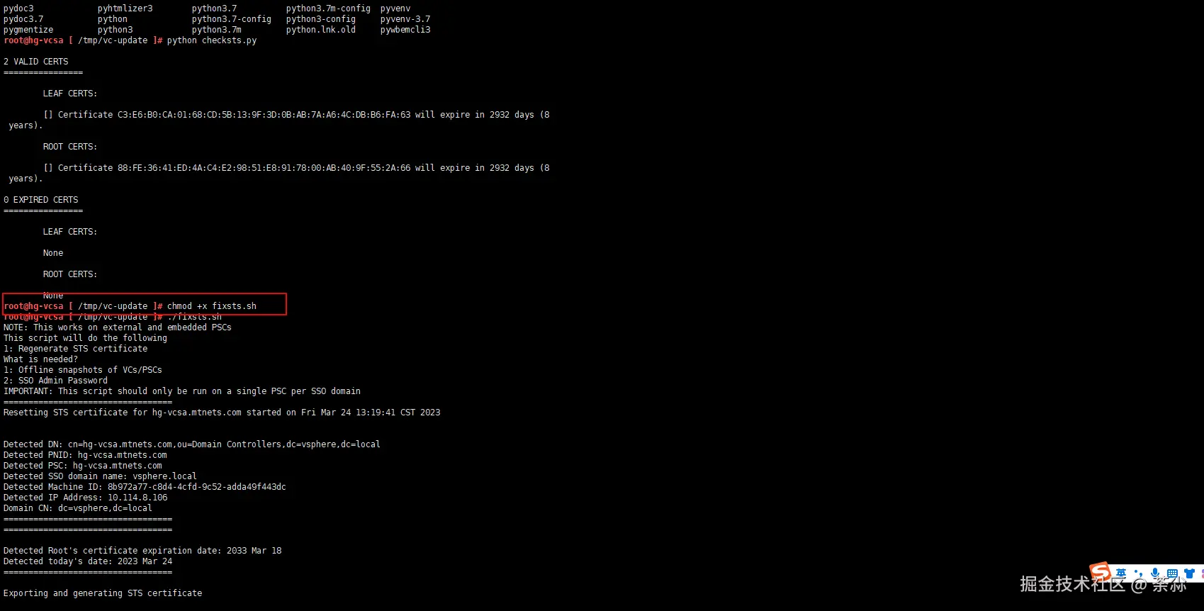 运行更新文件 ./fixsts.sh,完成后可以登录vc查看证书是否已经更新。