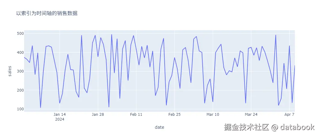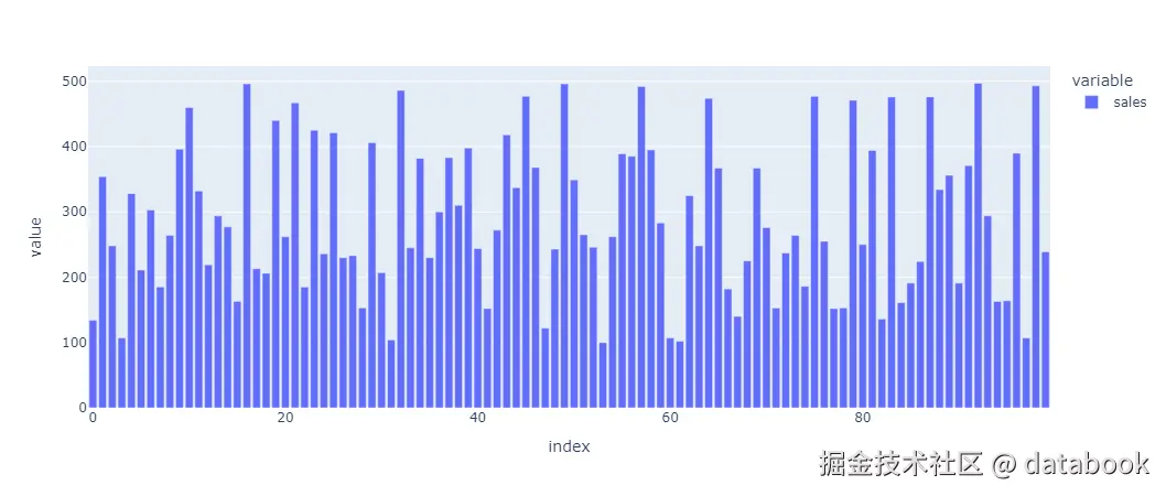 "sales": np.random.randint(100, 500, size=100),