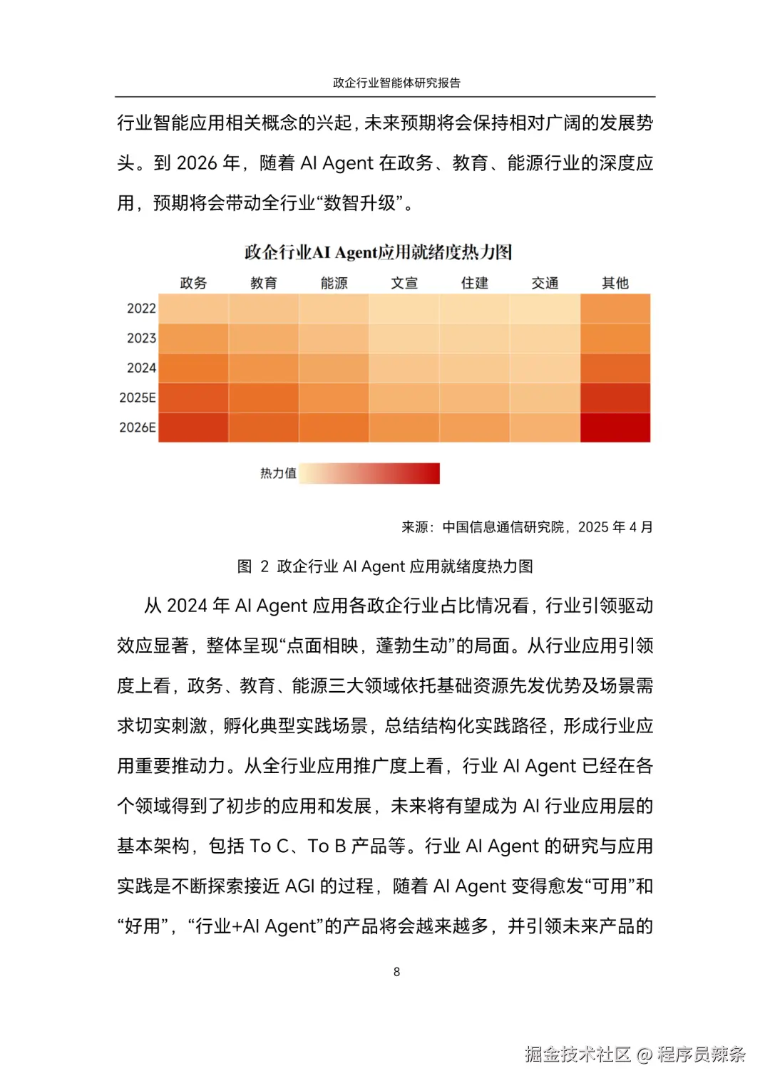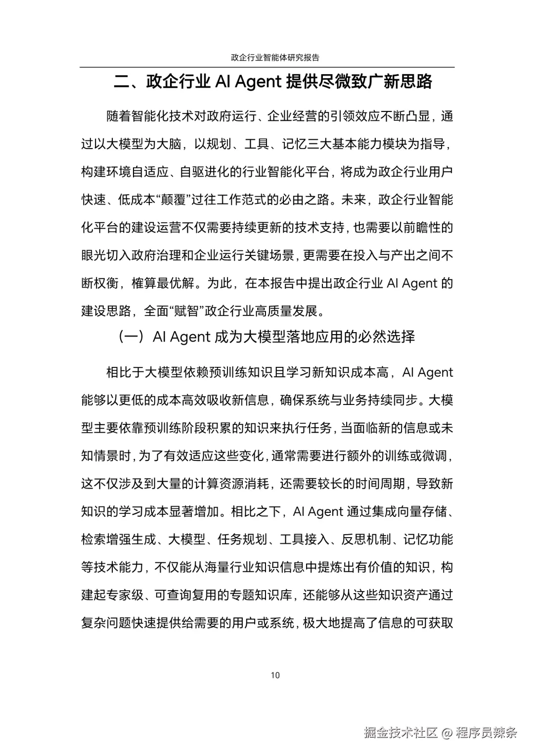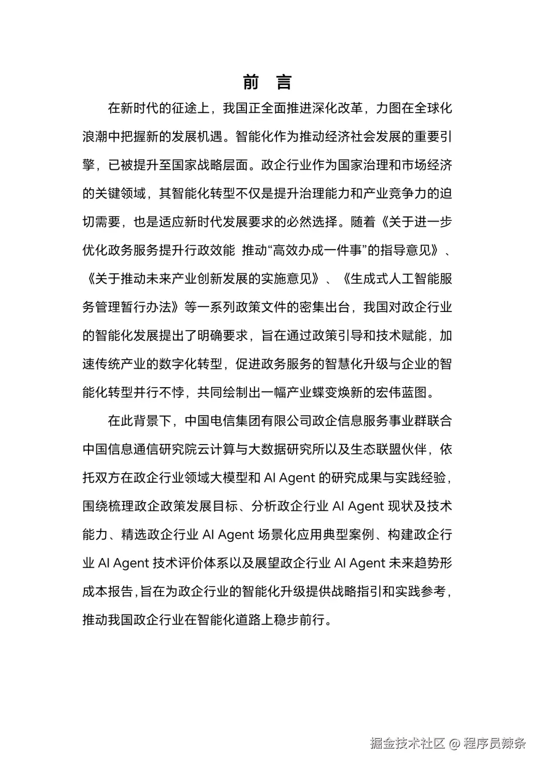 本文主要介绍了政企行业AI Agent的发展现状、技术架构、应用案例、评价体系以及面临的挑战和解决思路。文章指出,AI Agent已成为大模型技术落地应用的关键途径,能够高效吸收新信息,确保系统与业务持续同步。政企行业AI Agent总体框架包括底座层、构建层、应用层和价值层,技术架构则分为模型层、能力层、平台层和应用服务层。文章还列举了政务、教育、文宣、住建、工业等多个领域的应用案例,展示了AI Agent在提升服务效率、增强核心竞争力方面的价值。此外,文章还提出了政企行业AI Agent的评价体系,包括关键技术评价指标和平台评价指标,以及大规模应用面临的挑战和解决思路。