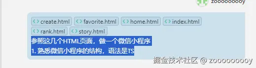 建好模板后,可以将上一步骤生成的html加入到微信小程序中,选中这几个文件,进行AI代码翻译。