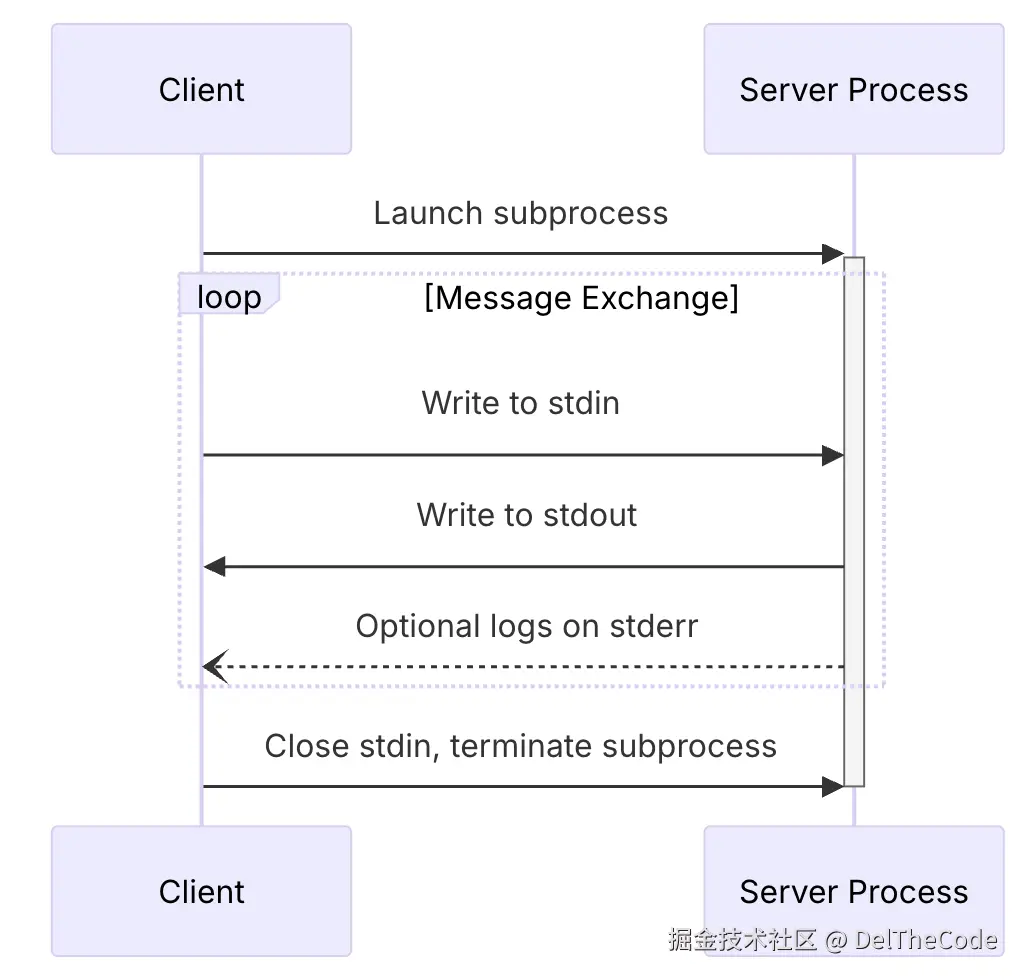 ① stdio(标准输入输出): 对于命令行工具的执行,可直接集成,适用于可通过脚本完成的任务,优点是无需搭建服务,缺点是需要用户有执行脚本的配置环境,比如node、py,脚本可远程托管到对应的包管理上。