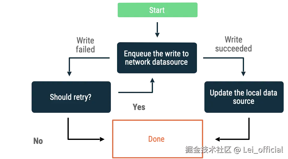当数据对应用至关重要时,这种方法是正确的选择。例如,在一个离线优先的 Todo-List APP 中,用户离线添加的所有任务都必须存储在本地,以避免数据丢失的风险。