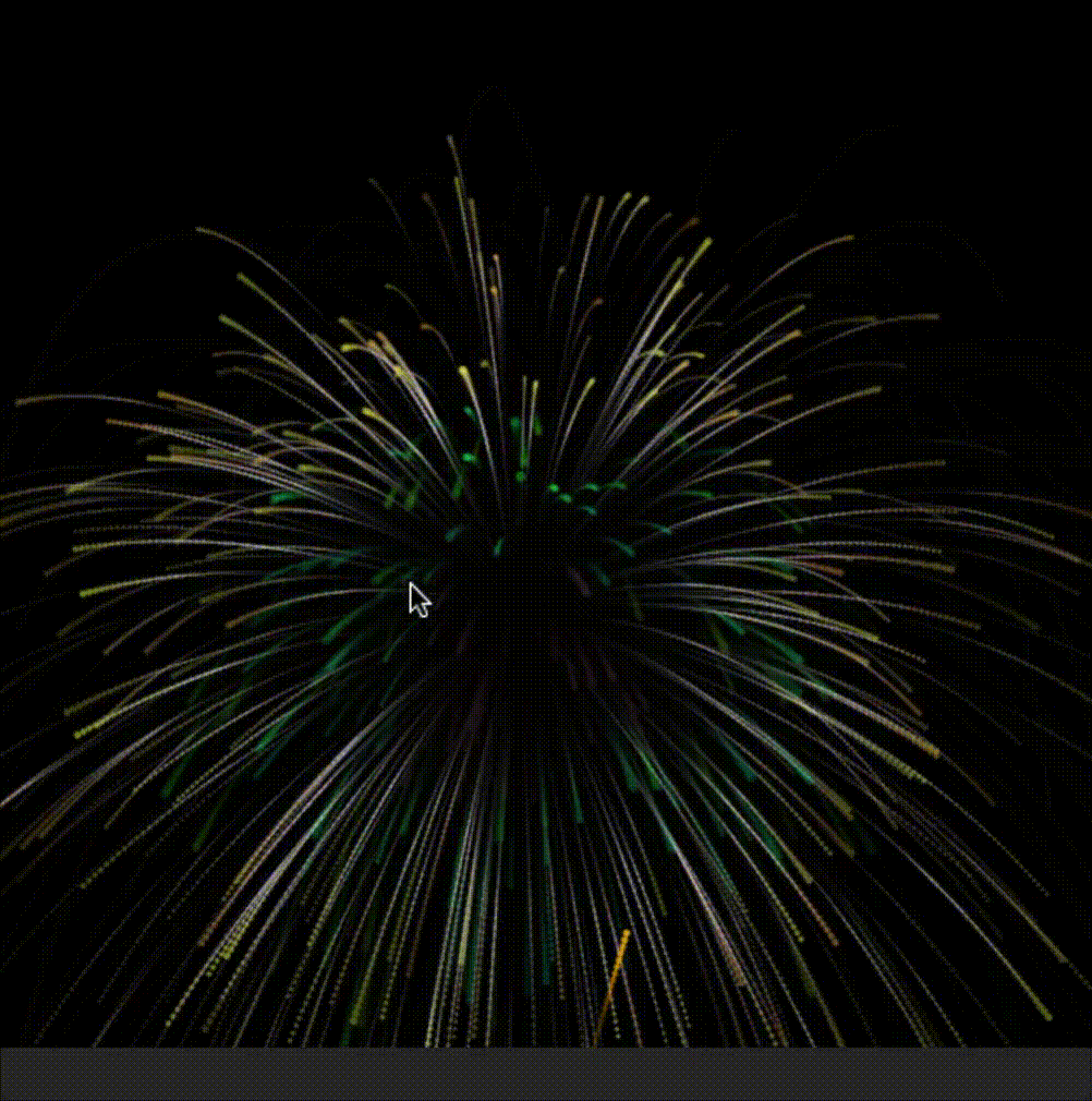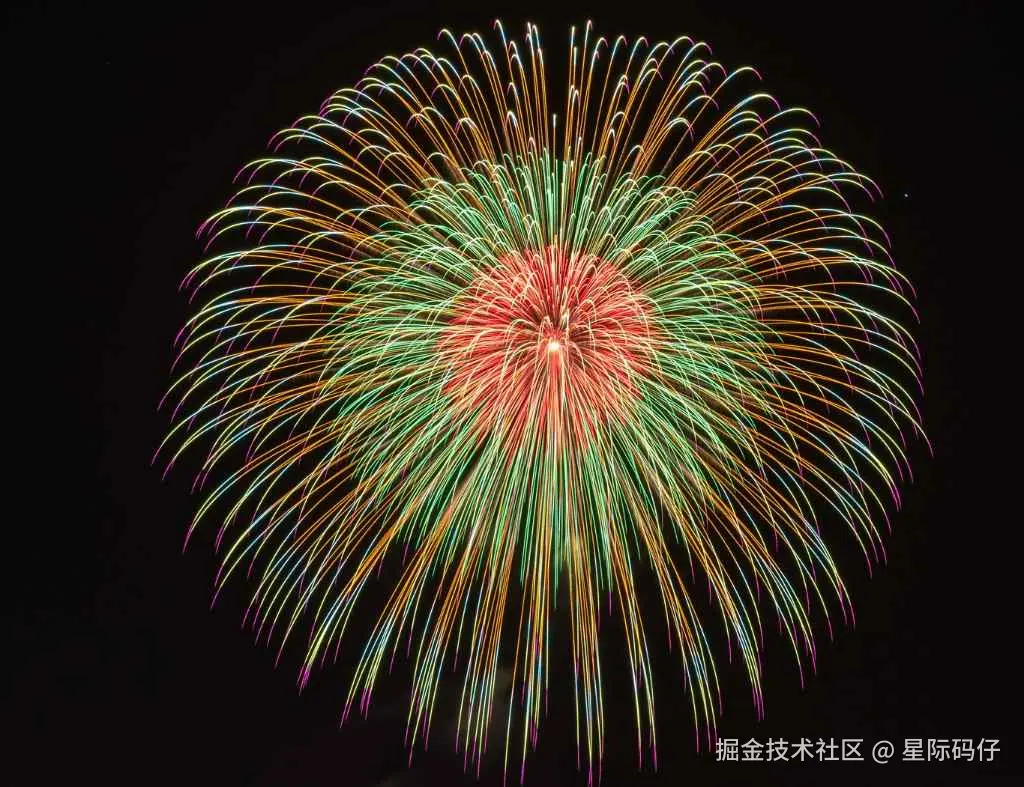 从生成结果看,Gemini 准确识别了烟花多层爆炸的视觉特征,并基本还原了三个主要层次的粒子颜色。