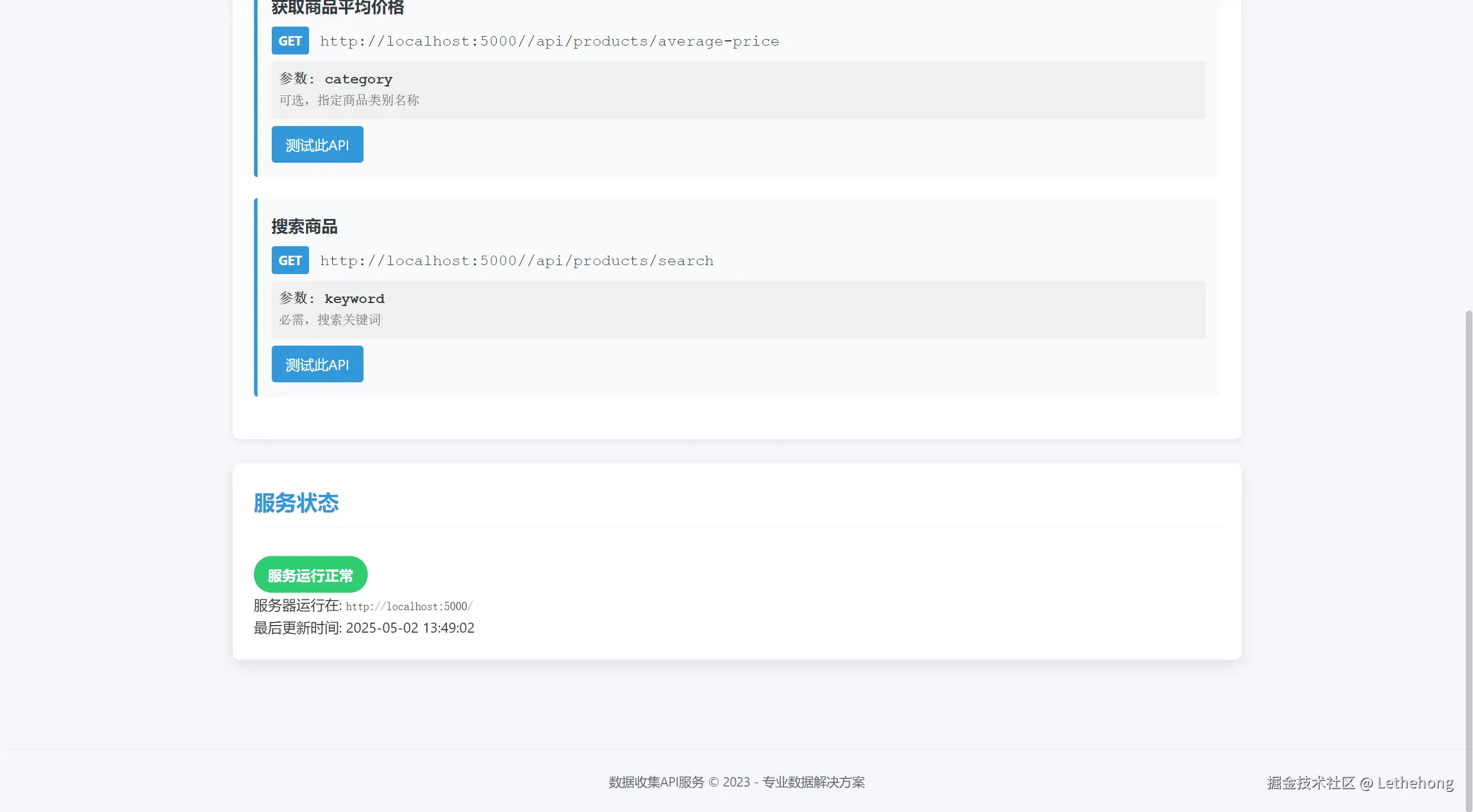 from flask import Flask, jsonify, request, render_template_string from data_collector import DataCollector import sys app = Flask(__name__) collector = DataCollector("sample_data.json") # 专业美观的HTML界面模板 HTML_TEMPLATE = """ <!DOCTYPE html> <html lang="zh-CN"> <head> <meta charset="UTF-8"> <meta name="viewport" content="width=device-width, initial-scale=1.0"> <title>数据收集API服务</title> <style> :root { --primary-color: #3498db; --secondary-color: #2980b9; --accent-color: #e74c3c; --light-color: #f8f9fa; --dark-color: #343a40; --success-color: #2ecc71; --warning-color: #f39c12; --danger-color: #e74c3c; } * { box-sizing: border-box; margin: 0; padding: 0; } body { font-family: 'Segoe UI', Tahoma, Geneva, Verdana, sans-serif; line-height: 1.6; color: #333; background-color: #f5f7fa; padding: 0; margin: 0; } .container { max-width: 1200px; margin: 0 auto; padding: 2rem; } header { background: linear-gradient(135deg, var(--primary-color), var(--secondary-color)); color: white; padding: 2rem 0; margin-bottom: 2rem; box-shadow: 0 4px 6px rgba(0, 0, 0, 0.1); } .header-content { max-width: 1200px; margin: 0 auto; padding: 0 2rem; } h1 { font-size: 2.5rem; margin-bottom: 0.5rem; } .subtitle { font-size: 1.2rem; opacity: 0.9; font-weight: 300; } .card { background: white; border-radius: 8px; box-shadow: 0 2px 10px rgba(0, 0, 0, 0.08); padding: 1.5rem; margin-bottom: 2rem; transition: transform 0.3s ease, box-shadow 0.3s ease; } .card:hover { transform: translateY(-5px); box-shadow: 0 5px 15px rgba(0, 0, 0, 0.1); } .card h2 { color: var(--primary-color); margin-bottom: 1rem; padding-bottom: 0.5rem; border-bottom: 2px solid var(--light-color); } .endpoint { margin-bottom: 1.5rem; padding: 1rem; background-color: var(--light-color); border-left: 4px solid var(--primary-color); border-radius: 4px; } .endpoint h3 { color: var(--dark-color); margin-bottom: 0.5rem; } .method { display: inline-block; padding: 0.25rem 0.5rem; background-color: var(--primary-color); color: white; border-radius: 3px; font-weight: bold; font-size: 0.9rem; margin-right: 0.5rem; } .path { font-family: 'Courier New', Courier, monospace; font-size: 1.1rem; color: var(--dark-color); } .btn { display: inline-block; padding: 0.5rem 1rem; background-color: var(--primary-color); color: white; text-decoration: none; border-radius: 4px; margin-top: 0.5rem; transition: background-color 0.3s ease; } .btn:hover { background-color: var(--secondary-color); } .status-badge { display: inline-block; padding: 0.5rem 1rem; border-radius: 20px; font-weight: bold; margin-top: 1rem; } .status-active { background-color: var(--success-color); color: white; } .param { margin-top: 0.5rem; padding: 0.5rem; background-color: #f0f0f0; border-radius: 4px; font-family: 'Courier New', Courier, monospace; } .param-name { font-weight: bold; color: var(--dark-color); } .param-desc { color: #666; font-size: 0.9rem; } footer { text-align: center; padding: 1.5rem; color: #666; font-size: 0.9rem; margin-top: 2rem; border-top: 1px solid #eee; } @media (max-width: 768px) { .container { padding: 1rem; } header { padding: 1.5rem 0; } h1 { font-size: 2rem; } } </style> </head> <body> <header> <div class="header-content"> <h1>数据收集API服务</h1> <p class="subtitle">高效、可靠的数据收集与分析平台</p> </div> </header> <div class="container"> <div class="card"> <h2>API文档</h2> <p>以下是我们提供的API端点列表,您可以直接点击测试或查看详细说明。</p> <div class="endpoint"> <h3>获取商品类别统计</h3> <p><span class="method">GET</span> <span class="path">{{ base_url }}/api/categories</span></p> <p class="param-desc">获取所有商品类别的统计信息</p> <a href="/api/categories" class="btn" target="_blank">测试此API</a> </div> <div class="endpoint"> <h3>获取商品平均价格</h3> <p><span class="method">GET</span> <span class="path">{{ base_url }}/api/products/average-price</span></p> <div class="param"> <div class="param-name">参数: category</div> <div class="param-desc">可选,指定商品类别名称</div> </div> <a href="/api/products/average-price?category=电子产品" class="btn" target="_blank">测试此API</a> </div> <div class="endpoint"> <h3>搜索商品</h3> <p><span class="method">GET</span> <span class="path">{{ base_url }}/api/products/search</span></p> <div class="param"> <div class="param-name">参数: keyword</div> <div class="param-desc">必需,搜索关键词</div> </div> <a href="/api/products/search?keyword=内存" class="btn" target="_blank">测试此API</a> </div> </div> <div class="card"> <h2>服务状态</h2> <div class="status-badge status-active">服务运行正常</div> <p>服务器运行在: <code>{{ base_url }}</code></p> <p>最后更新时间: {{ current_time }}</p> </div> </div> <footer> <p>数据收集API服务 © 2023 - 专业数据解决方案</p> </footer> </body> </html> """ from datetime import datetime @app.route('/') def index(): """显示专业美观的API文档页面""" return render_template_string(HTML_TEMPLATE, base_url=request.base_url, current_time=datetime.now().strftime("%Y-%m-%d %H:%M:%S")) # 原有的API端点保持不变... if __name__ == '__main__': # 获取命令行参数中的端口号,默认为5000 port = int(sys.argv[1]) if len(sys.argv) > 1 else 5000 print("\n" + "="*50) print(f"数据收集API服务启动中...") print(f"访问地址: http://localhost:{port}") print("="*50 + "\n") try: app.run(host='0.0.0.0', port=port, debug=True) except Exception as e: print(f"\n启动失败: {str(e)}") print("\n常见问题排查:") print("1. 确保没有其他程序占用端口") print("2. 检查防火墙设置是否允许该端口") print("3. 确保所有依赖已安装 (pip install flask)")