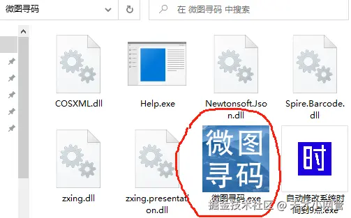 六、到这里就已经获取到了文件夹的路径了,接下来使用工具来自动识别接收到的图片,获取 【微图寻码】 这个软件,解压出来到文件夹中,双击软件图标,打开软件。