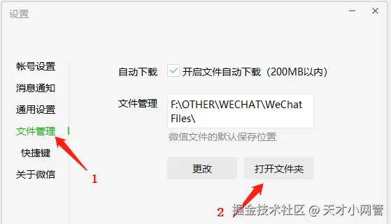 二、然后在设置窗口中,点击【文件管理】-【打开文件夹】