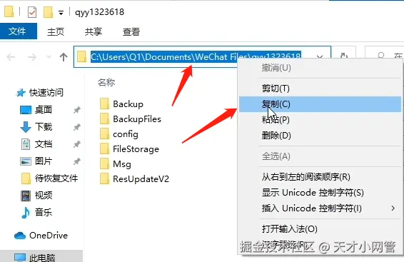 3,然后电脑会打开一个文件夹,这个就是该微信号的数据文件夹,把文件夹的路径复制下来