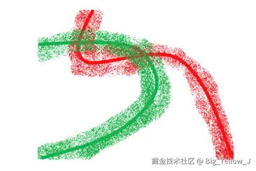 第二种情况,就是数据本身的特性 。一般来说,生成器产生的数据都是一个映射到高维空间的低维流型。而低维流型之间本身就“不是那么容易”产生重叠的。如下图所示