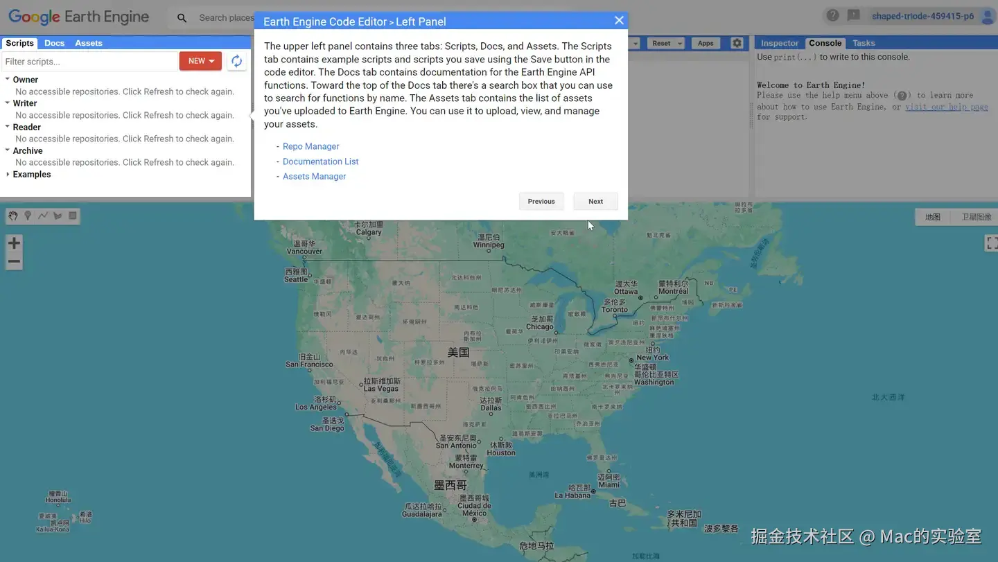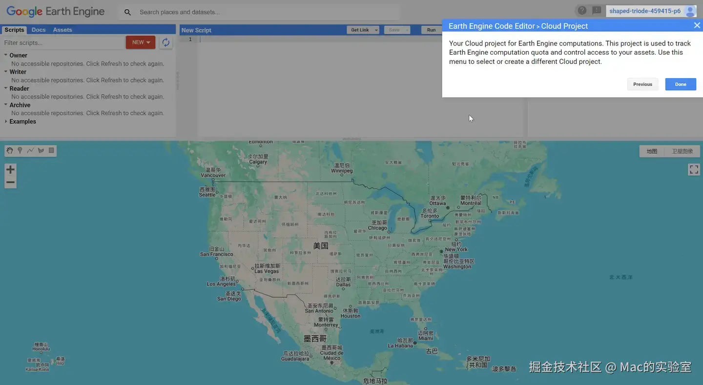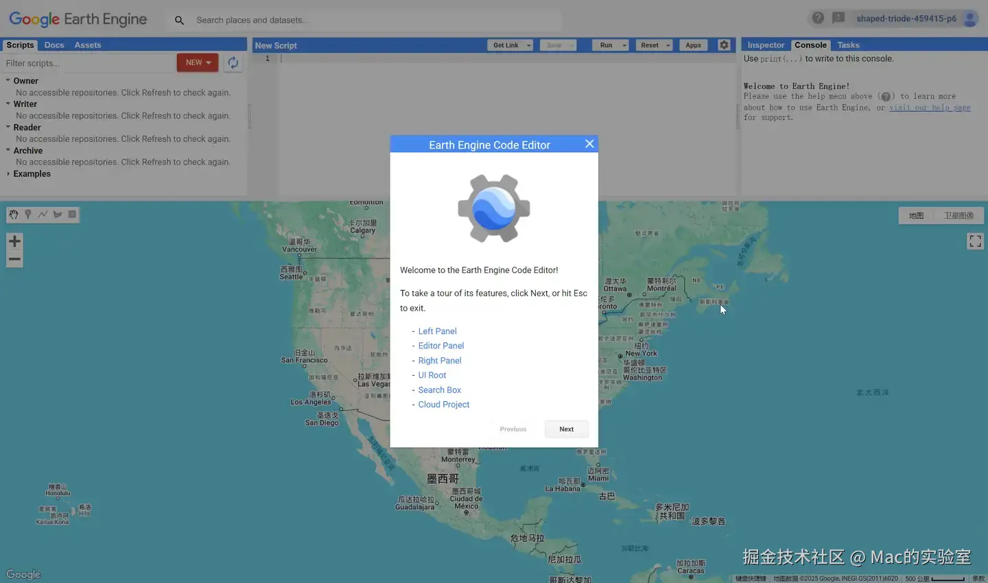 第七步,完成配置信息注册后,我们打开GEE去检验:code.earthengine.google.com/
