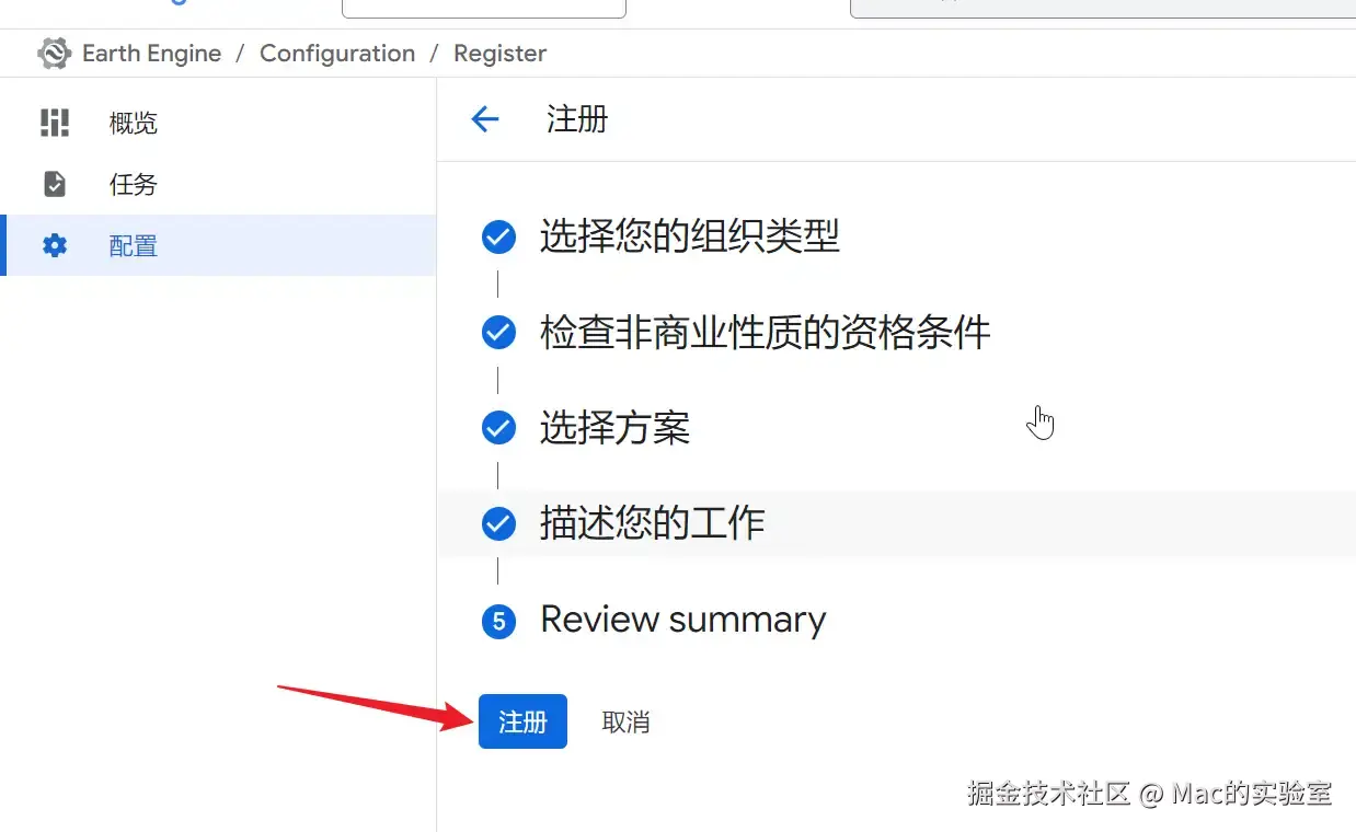 第六步,点击配置,选非商业用途注册,填写用途信息