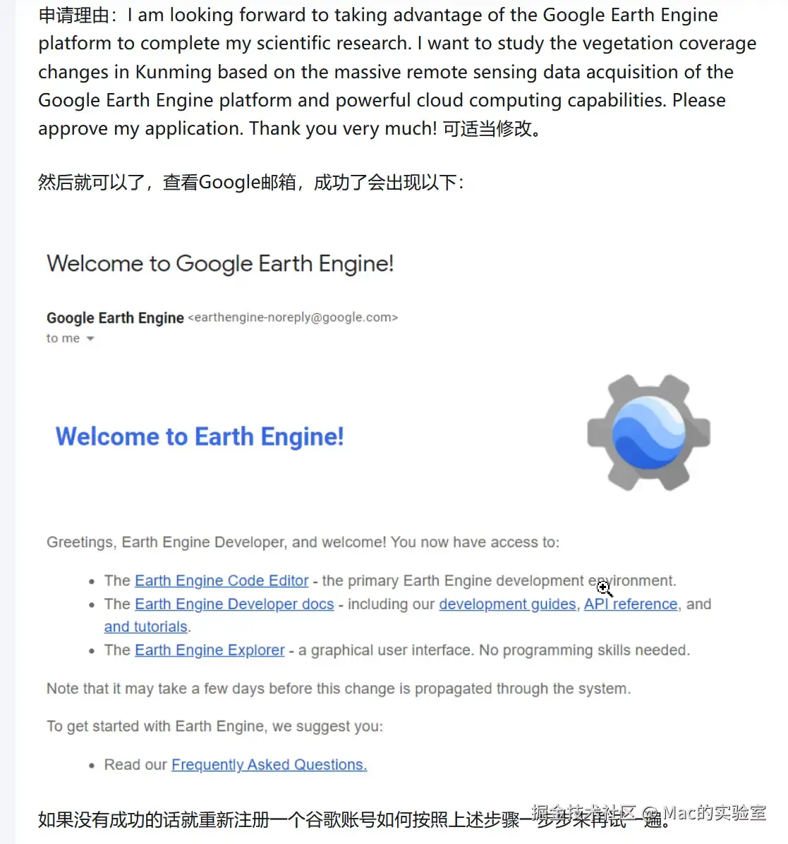 在几年前,GEE的注册并不像现在这样友好。当时,用户需要手动提交表单申请,必须使用高校edu教育邮箱绑定,甚至还要用英文写一段申请的话术才能完成注册申请,整个流程显得繁琐且限制较多。