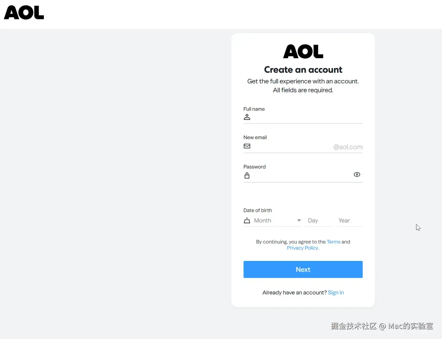 下面手把手教大家如何申请注册一个美国Aol邮箱: