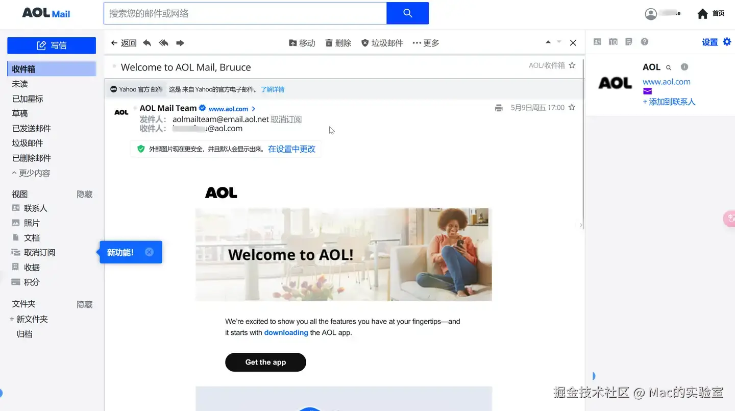 设置完毕后,你就可以正式使用 AOL mail 的邮箱功能。
