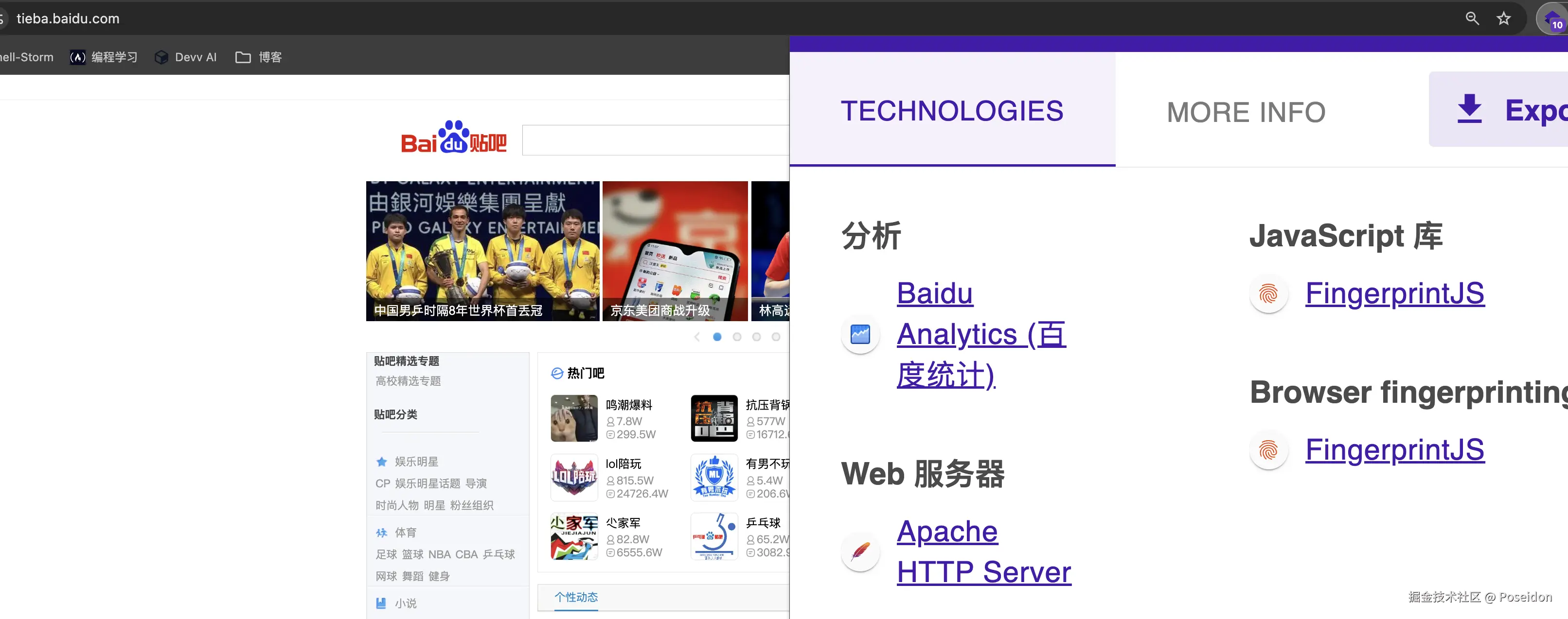 Wappalyzer 是一个开源的工具,专门用于检测和识别网站所使用的各种 Web 技术堆栈。它能够通过分析网站的 HTML 代码、HTTP 响应头以及 JavaScript 等信息,快速识别出网站所使用的技术,包括 Web 服务器、Web 框架、内容管理系统(CMS)、JavaScript 库、分析工具等。