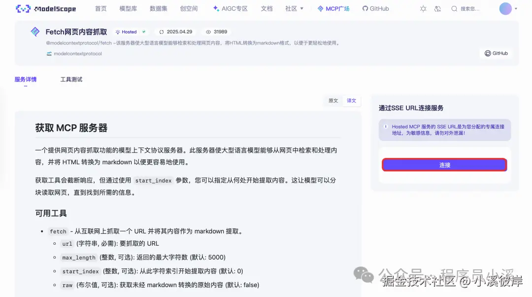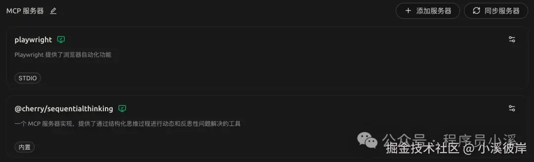 同步完成后,即可在列表看到从魔搭上启用的MCP服务