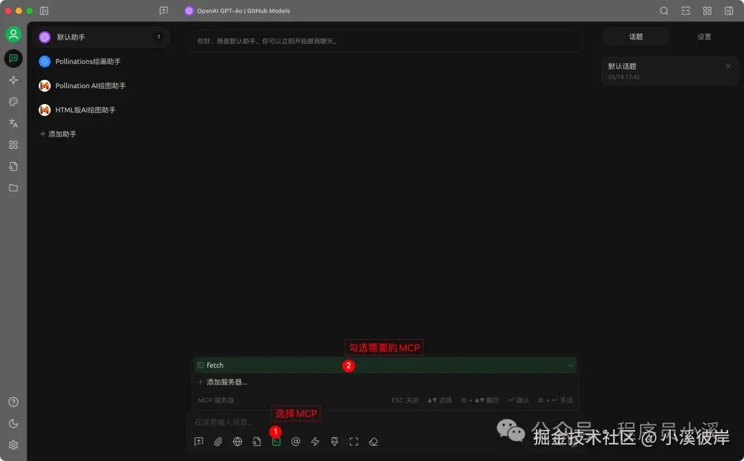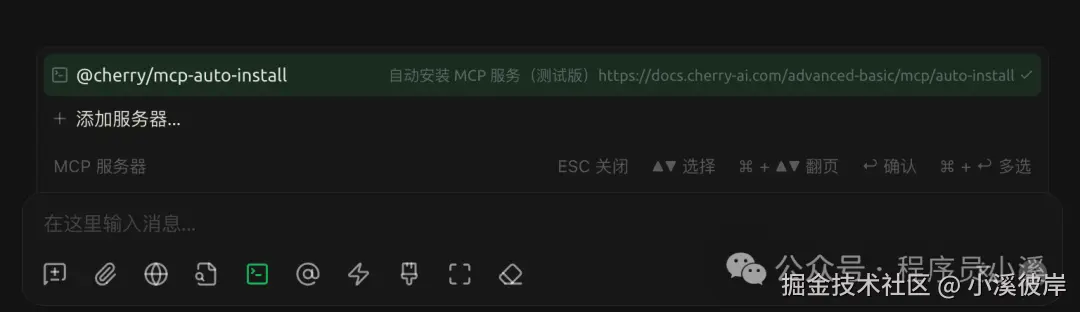 在对话框中勾选 @cherry/mcp-auto-install MCP服务