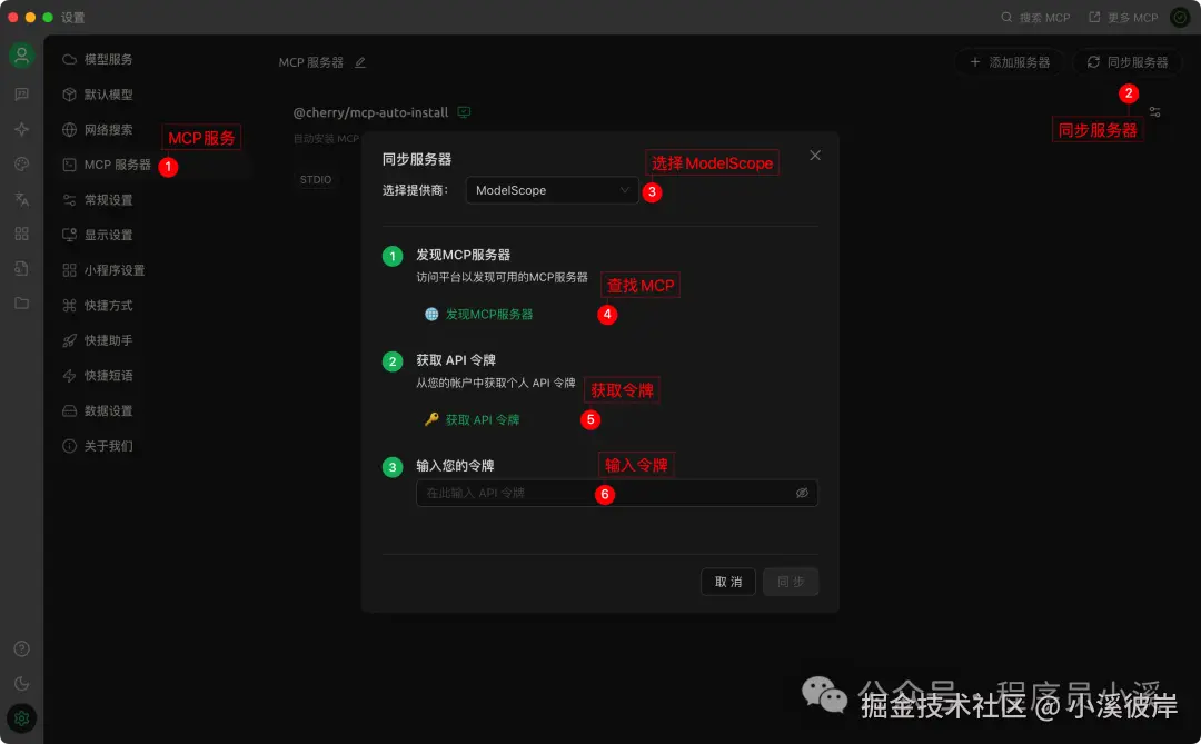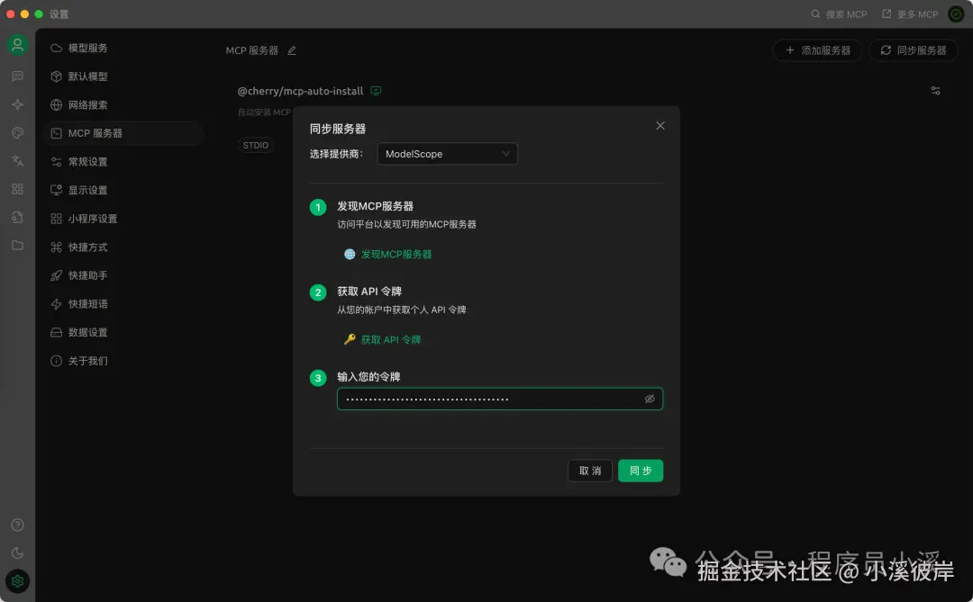 回到Cherry Studio,输入在魔搭上创建的API Key,点击【同步】