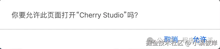 将上面地址粘贴到浏览器中打开,识别完成后点击【允许】使用Cherry Studio客户端打开