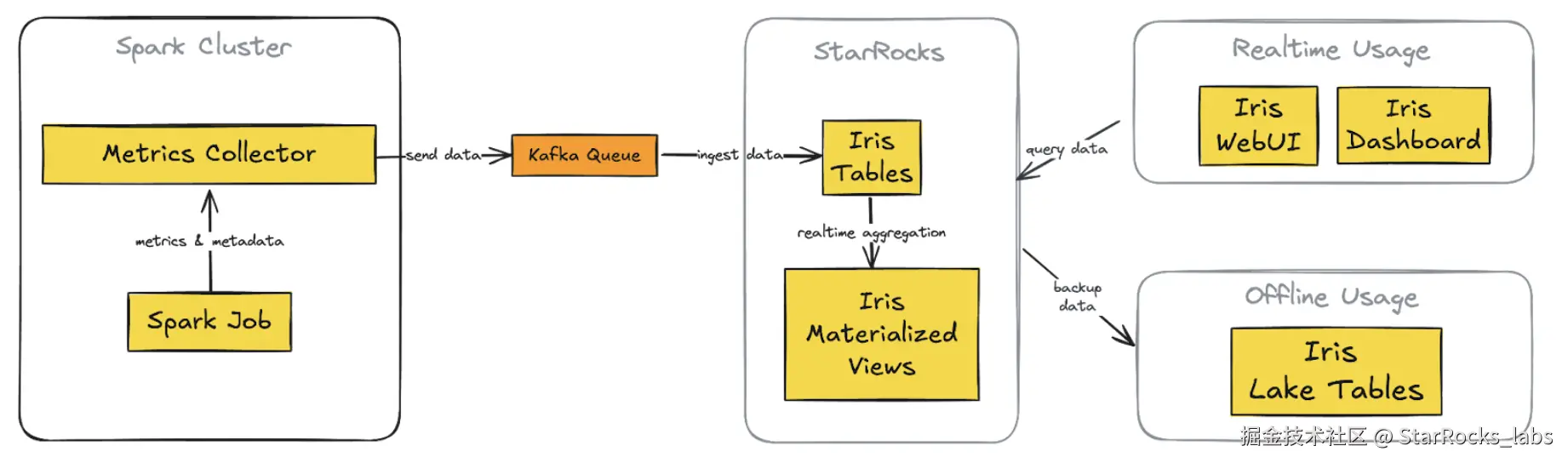 (图1. 集成了 StarRocks 的新 Iris 架构)