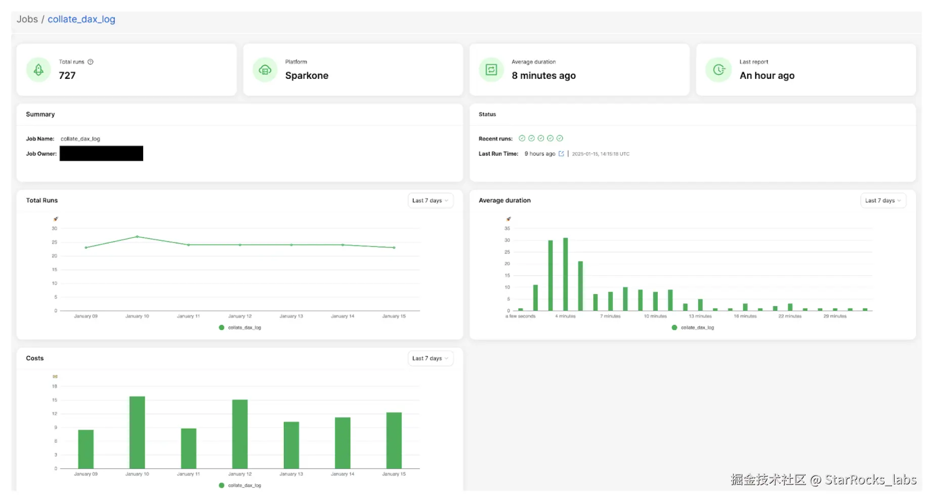 - 我们在 StarRocks 中创建了物化视图,用于预计算和聚合每次作业运行的数据。