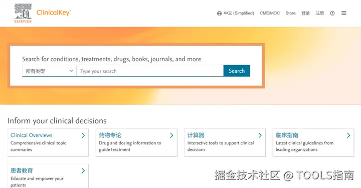 爱思唯尔匠心打造的临床决策支持工具,ClinicalKey集循证医学知识之大成。它不仅提供基于最新证据及实践指南的临床综述,还收录了大量经典医学图书与中国临床用药信息。中文界面的贴心设计,让中文关键词检索也能精准匹配 英文文献。
