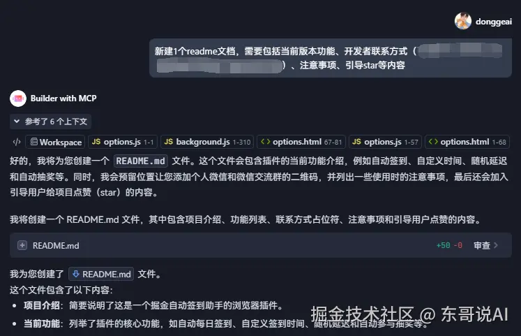 (可选)最后,如果你要把项目发给别人使用,最好有一个说明文档,让AI根据项目生成一个readme文档:
