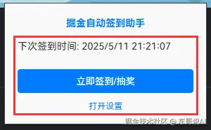 可以看到,插件实现了立即手动签到抽奖和自动定时签到的功能,并且会显示下次的签到时间。点击打开设置可以进一步自定义设置: