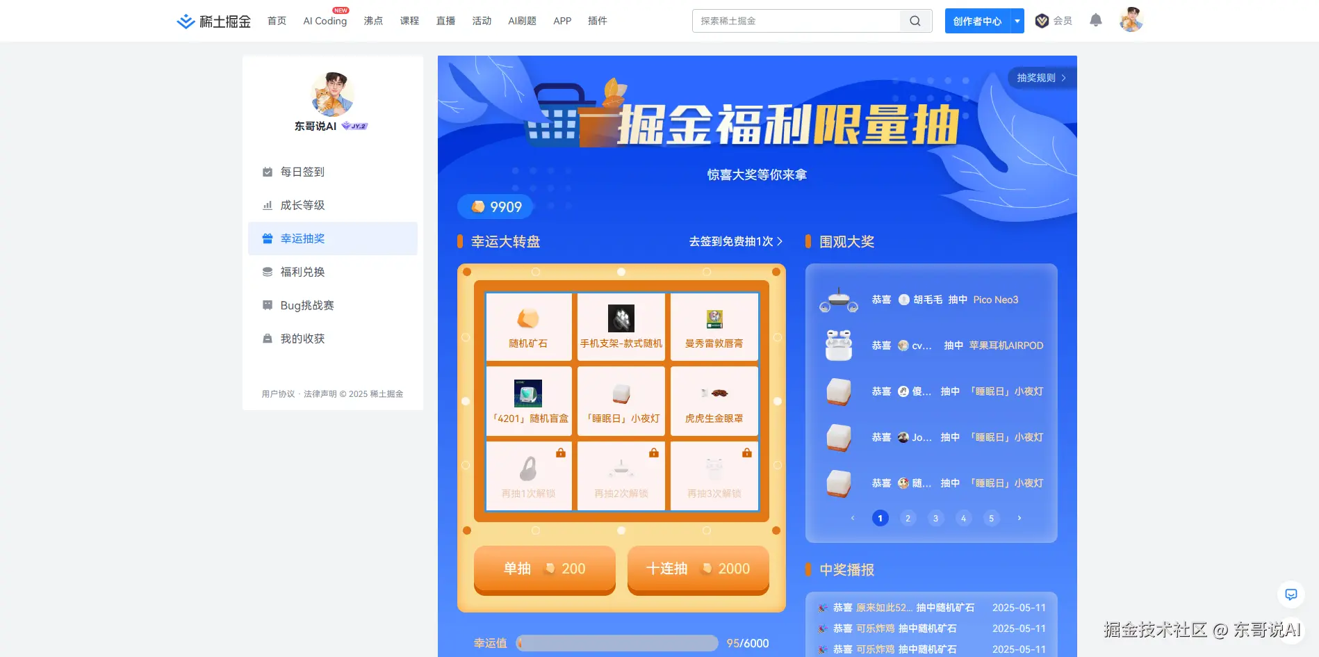 虽然很多奖品价值不一定很高,但是能够薅到掘金的羊毛肯定是不会拒绝的。