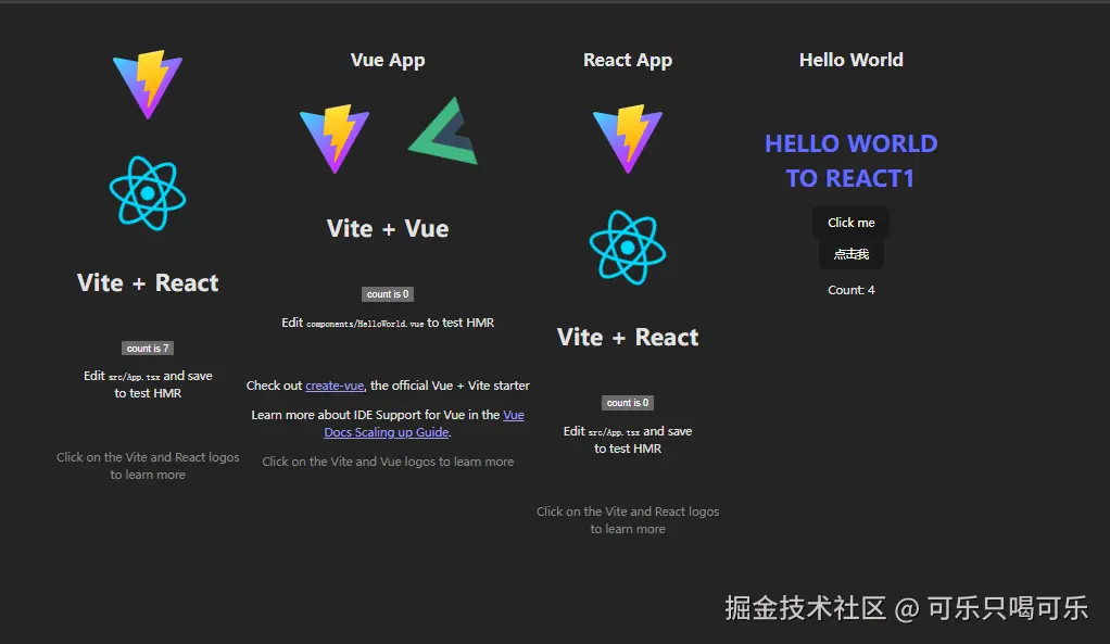 以上就已经配置好了一个React版本的Host应用,以及React和Vue版本的Remote应用。