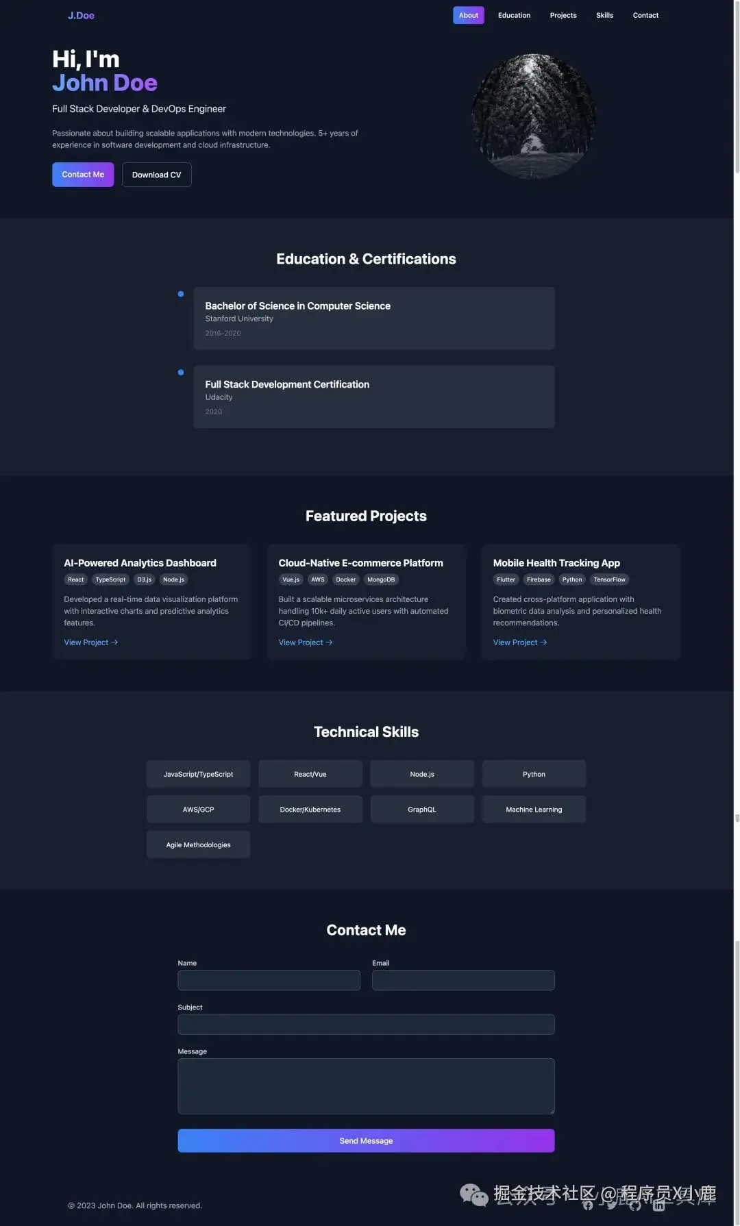 提示词:为软件工程师创建个人网站,包含个人介绍、教育背景、项目经验等部分。