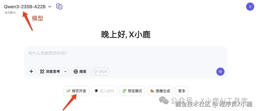 一、QwenChat「网页开发」入口