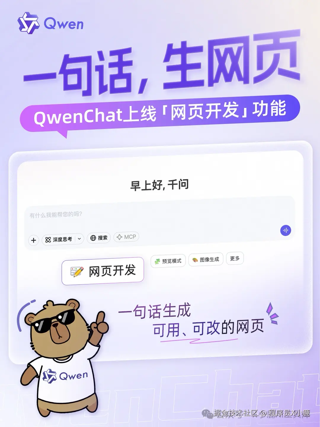 使用 QwenChat 的「网页开发」功能生成网页,还是比较简单的:一句话,就能生成一个网页!