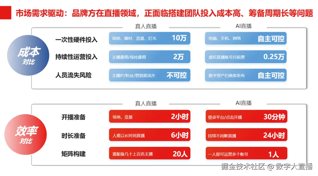 2.人力成本锐减:一个数字人可替代主播、场控、剪辑等多个角色,且24小时待命;