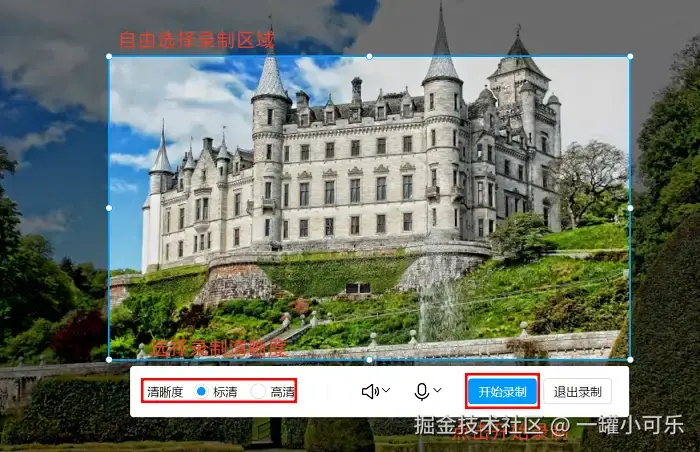 步骤2:这时可以用鼠标拖动选框,框好想录的区域,最后点击 “开始录制” ,QQ就开始工作啦。