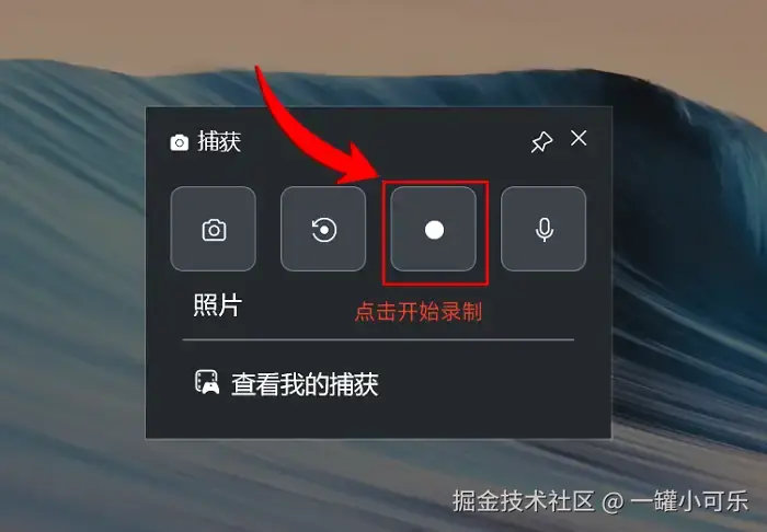 步骤1:同时按下 “Windows+G” ,就能调出Xbox Game Bar,接着点击 “捕获” 按钮。