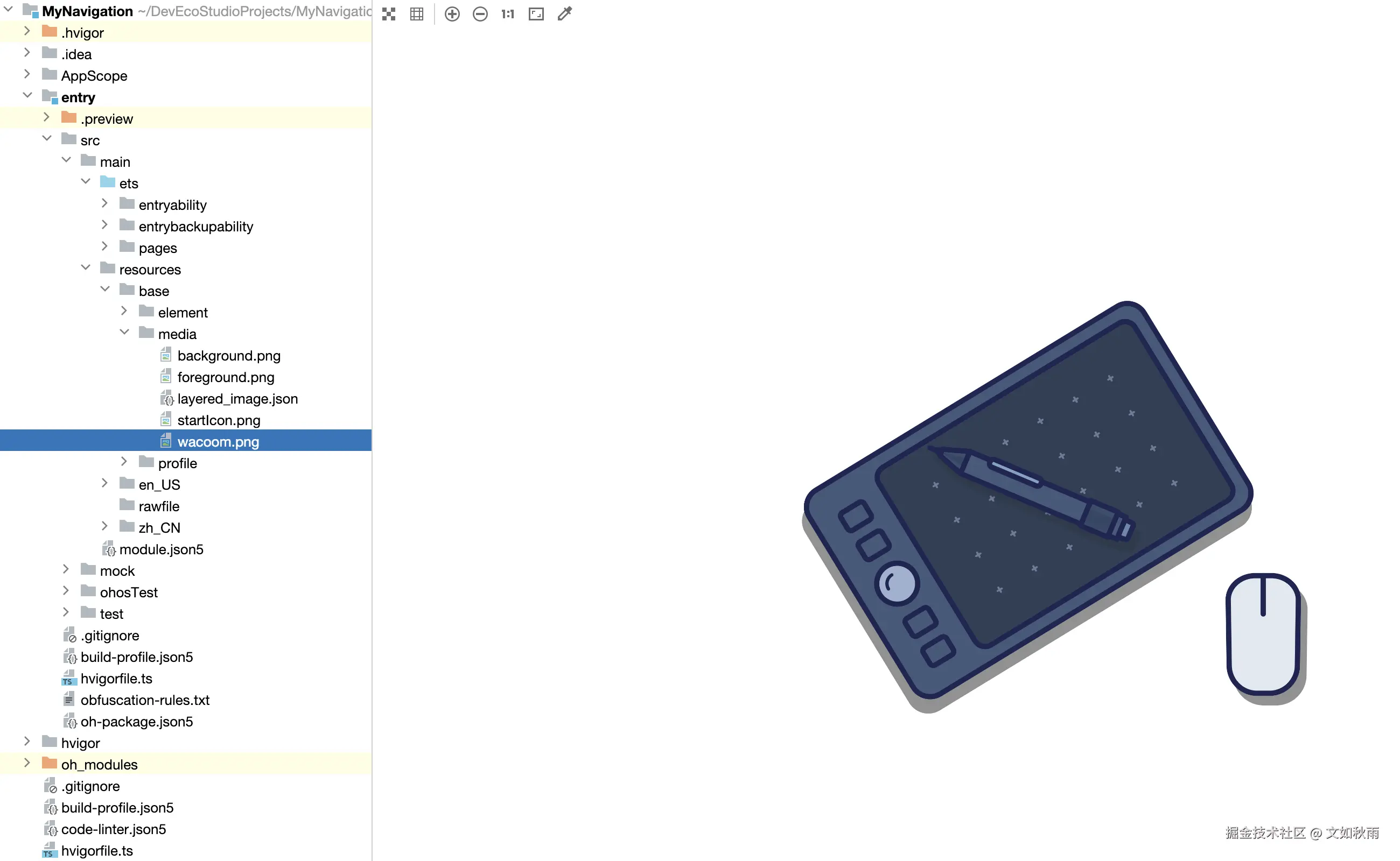 创建一个名为MyPreview 的新的 HarmonyOS 项目,并打开工程开发面板。