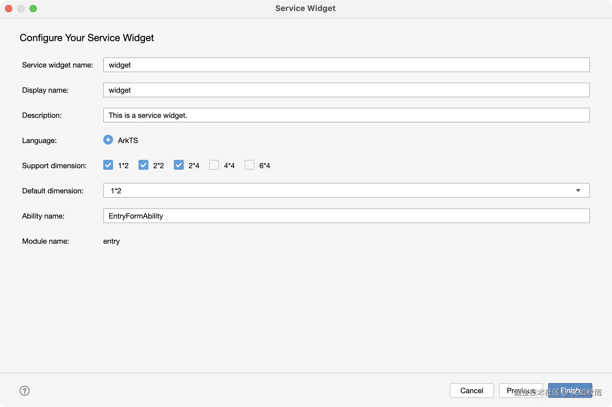 - Service widget name:卡片的名称,默认名称为widget;