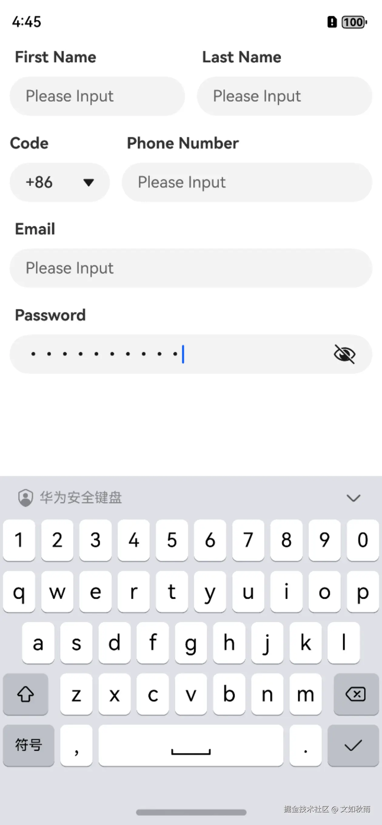 创建一个子组件CustomTextInputView,用于渲染输入框组件,并通过text、title、placeholder、inputType 参数动态设置输入框的输入文本、标题、提示文本、输入类型,代码如下: