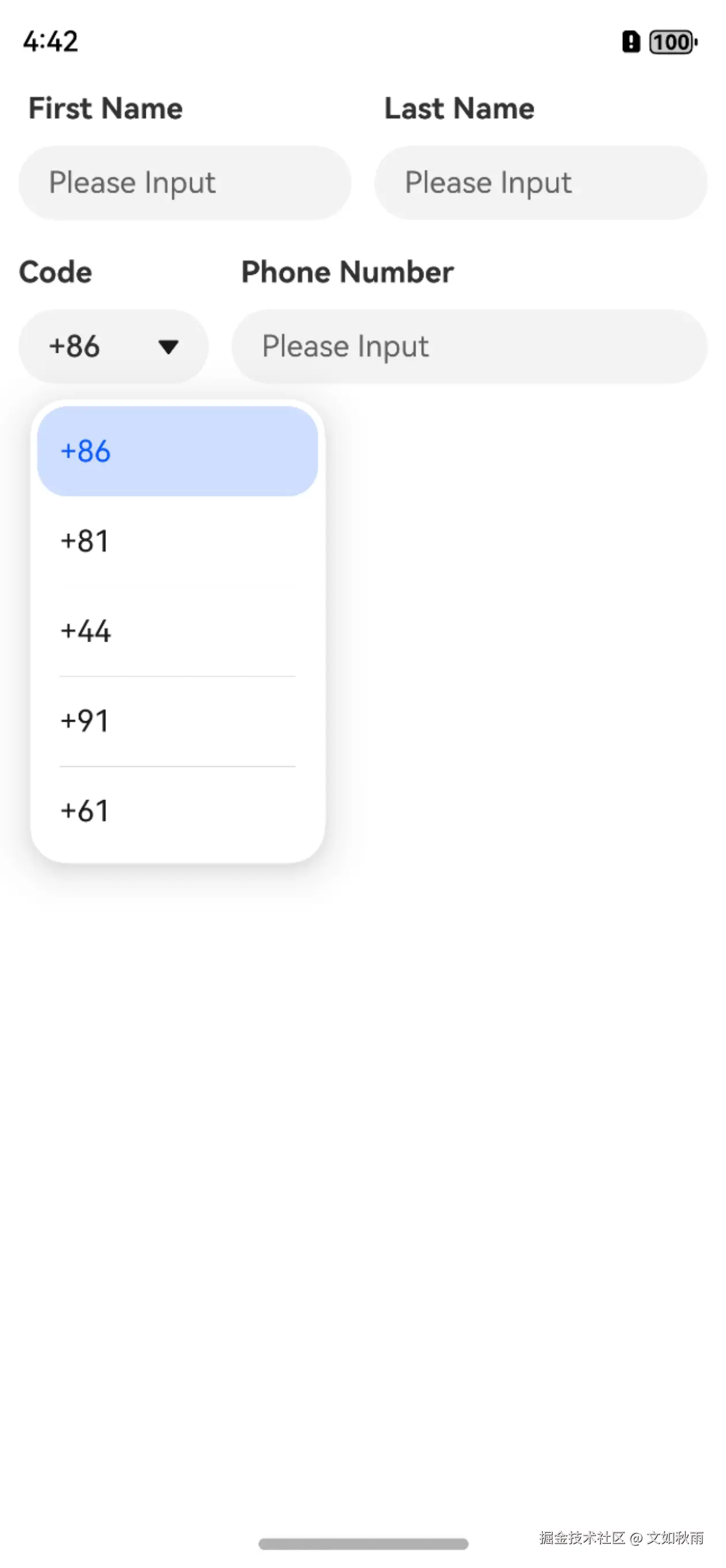联系方式栏目常常要求用户以区号+手机号格式进行填写,其中区号部分,在交互上会采用下拉框的方式让用户能够更便捷地选择正确的区号。在 ArkUI 中,Select 组件用于实现下拉选择功能,开发者可以使用 Select 组件实现区号选择功能。