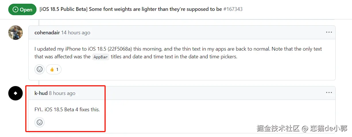 除此之外,#167343 目前在 iOS 18.5 Public Beta 上会出现某些 font weights 会出现 "thin font" 问题: